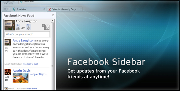 - A persistent, real-time Facebook newsfeed located within the Internet Explorer sidebar.