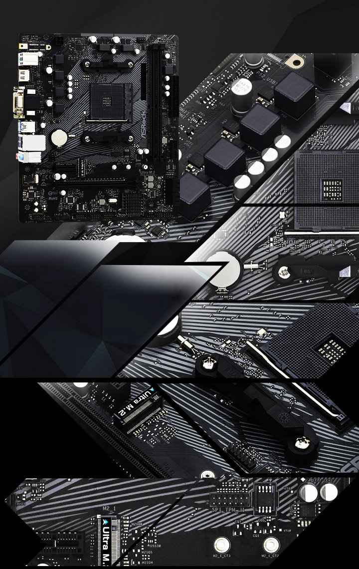 • Supports AMD AM4 Socket Ryzen™ 3000, 3000 G-Series, 4000 G-Series, 5000 and 5000 G-Series Desktop Processors