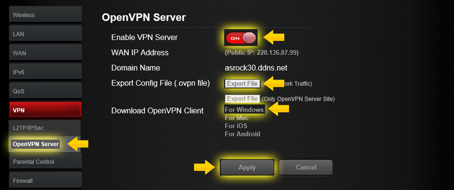 ASRock X10提供了多種撥號方式的VPN伺服器功能,包括高安全性L2TP/IPSec和OperVPN。用戶可以輕鬆地將他們的家庭網路和遠端用戶端連接起來,並共享文件。此外,遠程行動設備也可以通過DLAN協定訪問X10的USB儲存設備,如音樂、影片、圖片串流等。
