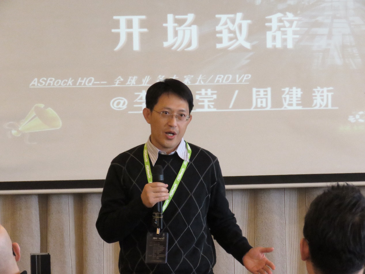 华擎科技全球业务总经理李俊莹先生进行开场致辞,分享华擎科技的发展历程与辉煌历史。探讨PC市场在专业化、小型化、个性化等发展方向,及华擎科技在PC硬件市场做出的一些积极的尝试,引领PC行业发展新的方向。