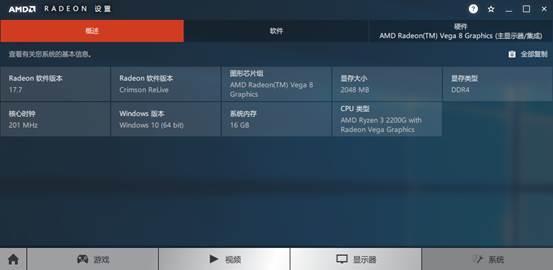 设置完以后,打开AMD的显卡驱动,就可以看到显存大小为2GB了。