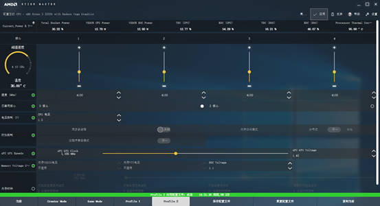 AMD Ryzen 系列的CPU,可以用AMD的Ryzen Master进行超频设置。相应的提升CPU的供电电压,就可以直接提升CPU的核心频率,我这里电压设置为1.5V,频率提升到4.1GHz,相对于最高睿频3.7GHz提升0.4GHz。