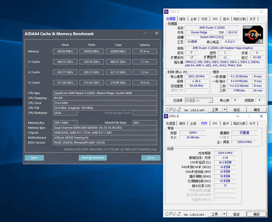 测试平台:华擎AB350 Gaming K4+AMD Ryzen 3 2200G。