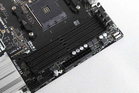 主板配置的4条DDR4内存插槽,最大支持64GB内存容量,支持双通道技术。