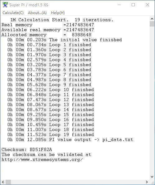 Super π 1M用时:12.085s。