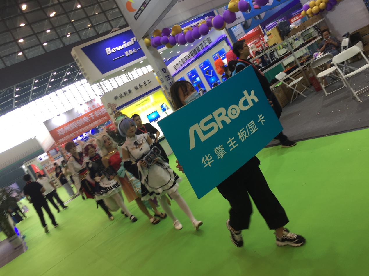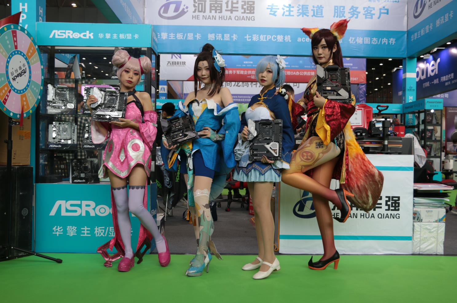 身着cosplay衣服的小姐姐们手持华擎显卡或主板围绕展会现场宣传,更让引得无数观众驻足观看、留连忘返,瞬间抓住了现场观众的目光。