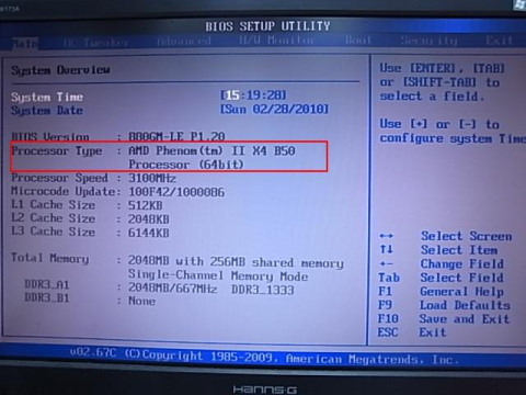 Third Step: Press "F2" or "DEL" to enter the BIOS. Processor Type unlock to "AMD Phenom(tm) II X4 B50" under "Main" page.