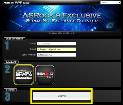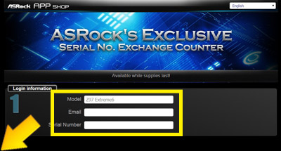Click on "Get BONUS" to enter "ASRock's Exclusive Serial NO. Exchange Counter "