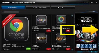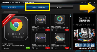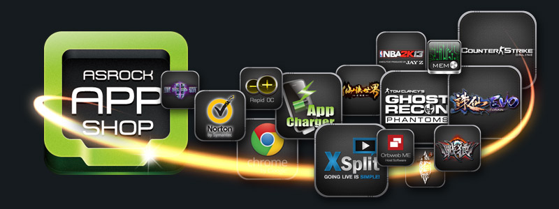 華擎「APP Shop」是業界唯一提供多合一下載軟體程式的實用工具,整合多項實用PC軟體與遊戲,不定時提供最新版本BIOS及各項軟體升級程式讓電腦隨時保持在最佳狀態,第一時間享用華擎最新技術。此外華擎「APP Shop」更獨家整合多款知名遊戲,讓玩家輕鬆連結遊戲世界,並可快速升級獲取華擎專屬多款遊戲虛寶或禮包,讓您體驗貴賓級的電競饗宴。