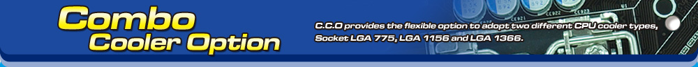 C.C.O., stands for Combo Cooler Option, is another exclusive hardware design on ASRock advanced motherboards. C.C.O. provides the flexible options to adopt different CPU cooler types and matches your socket LGA 775 or LGA 1156 / LGA 1366 CPU cooler in the respective holes. Once again, ASRock has successfully expanded the utilization of PCB by the exclusive C.C.O. design.