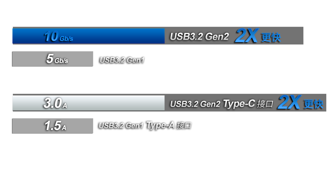 双 USB 3.2 Gen2 接口(Type-A + Type-C)
