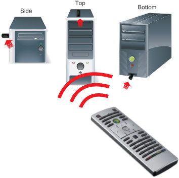 az MCE távirányító saját széles érzékelési szögű CIR távirányító vevőegységgel működik. A CIR vevőegység több szögből (fentről, lentről és szemből) is képes érzékelni a szórt infravörös jelet, így kompatibilis a piacon kapható legtöbb házzal.