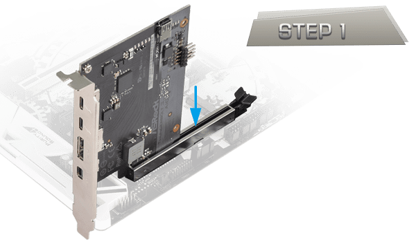 Step1. Align and install ASRock Thunderbolt 3 AIC into PCI-E 3.0 x4 slot on the motherboard.