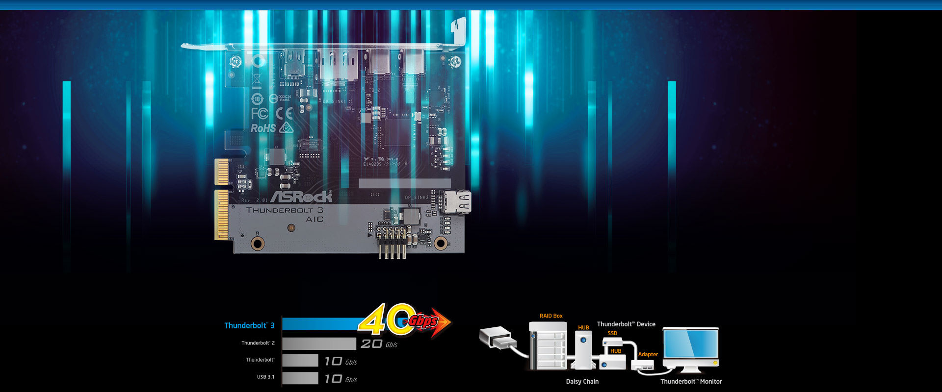 - Supports 40Gbps bi-directional bandwidth per channel with Thunderbolt™ 3 port