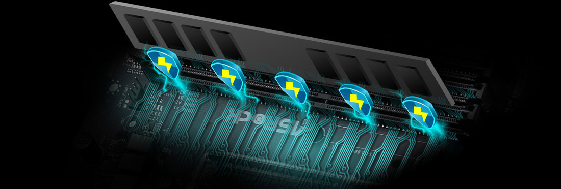 The reinforced DIMM slot is surfaced mounted onto the motherboard to give better physical strength as well as a more stable memory signal, with this superior revolutionary design, it is able to dramatically overclock DRAM module up to insane frequency.