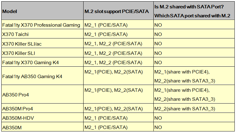 M.2 specification support may vary with a different AM4 motherboard. Please refer to the following table for support information.