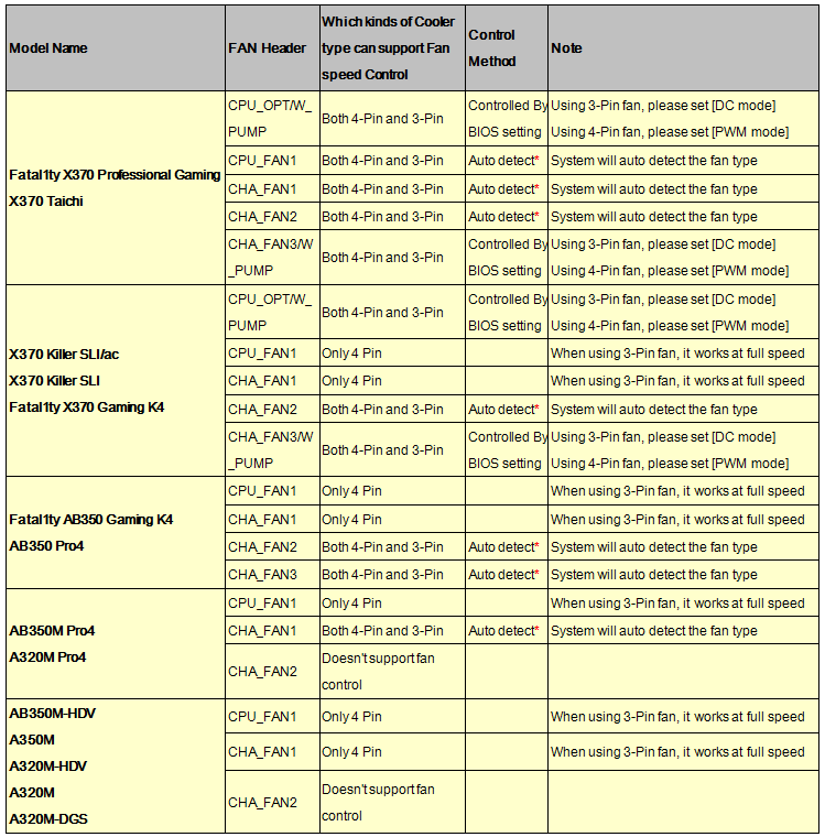 *Auto detect – system will automatically detect the fan type installed, so user doesn't set "DC or PWM" mode additionally under BIOS setup.