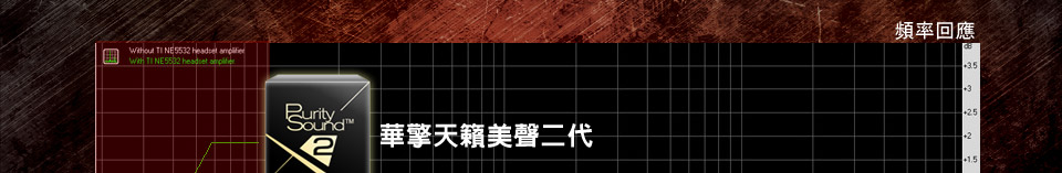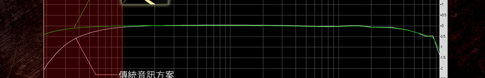 此頻率回應圖表是以32 歐阻普通耳機測試而得。實驗顯示傳統音效方案的頻率回應在低頻率時明顯地下降,而天籟美聲二代技術則能夠保持其低頻頻率回應水準。在20 Hz低頻部分,天籟美聲二代 (0.4dB) 與傳統方案 (2.0dB) 相比,提供高達20% (1.6dB) 的效能改善! 除此之外, 透過 TI® NE5532 擴大器,更能提供震撼人心的低音音效。 |
