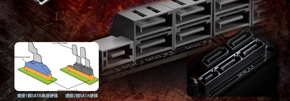 SATA Express 連接埠* 提供 PCIe Gen2 x2 (10Gb/s) 的高傳輸速率,華擎科技率先支援這項最新技術,讓狂熱玩家能在第一時間體驗超高速的讀寫效能!