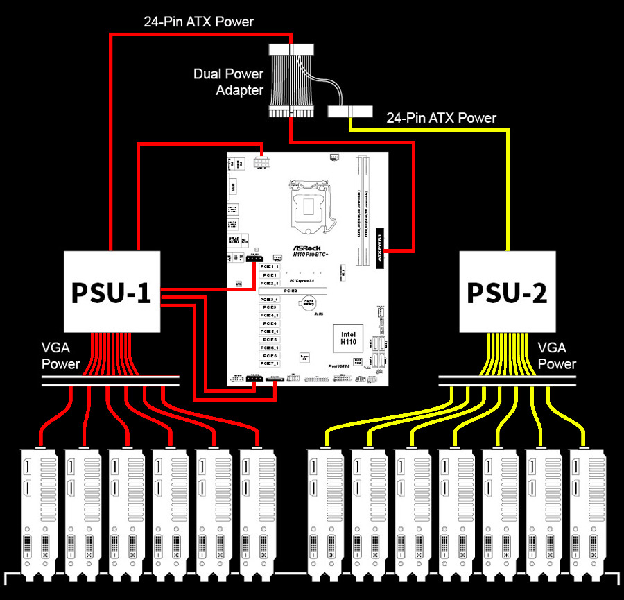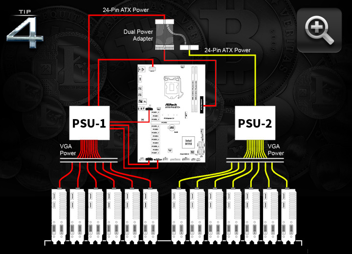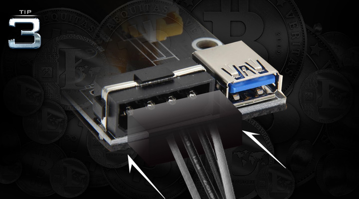 附加的 4-pin 和 SATA 電源接頭能夠保證系統全速挖礦時依然擁有最高的穩定性。