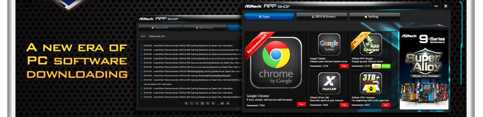 ASRock APP Shop is in the only all-in-one software package that delivers you the most practical PC apps and tools, in one integrated interface – from ASRock exclusive tools to the most update-to-date options of the latest technology.