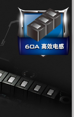 与传统电感相比,华擎的新一代高效电感可有效提高饱和电流达 3 倍,提高并改善主板的 Vcore 电压供应。