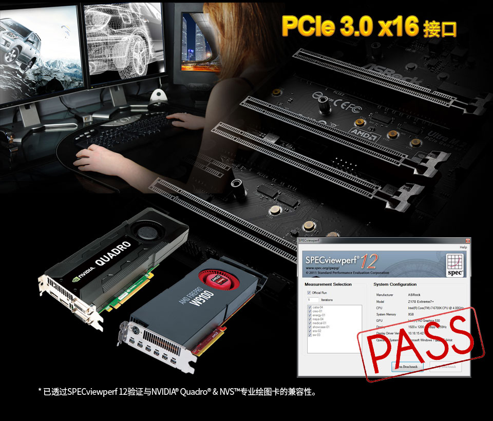 华擎 Extreme 系列主板支持 Nvidia Quadro 与 AMD FirePro 工作站显卡,是创建虚拟现实(VR)内容的顶级配备。