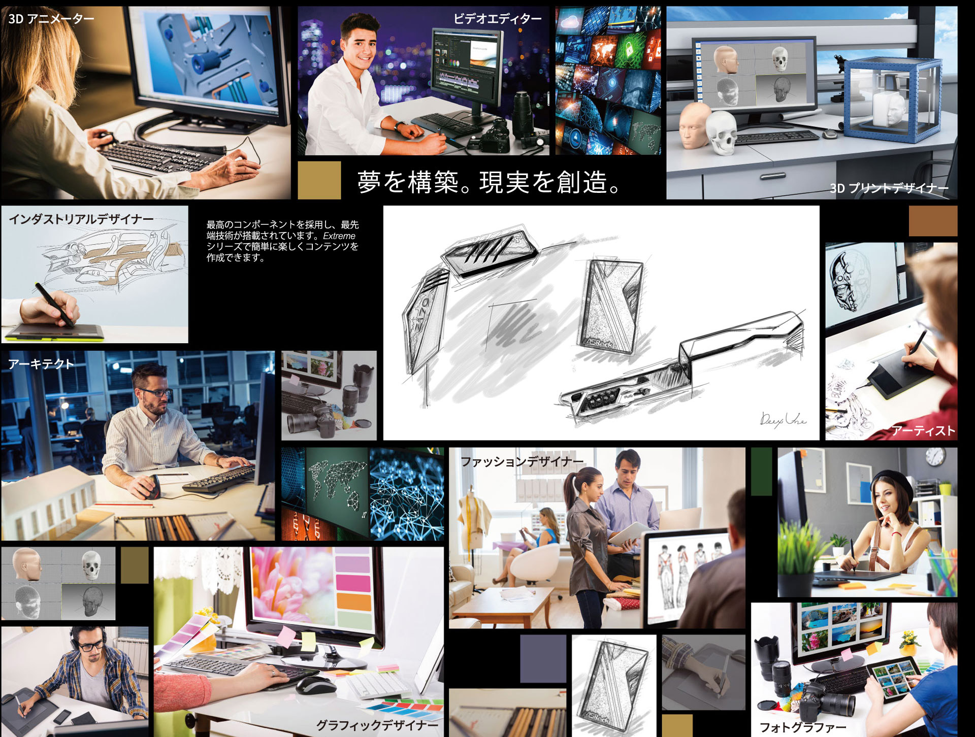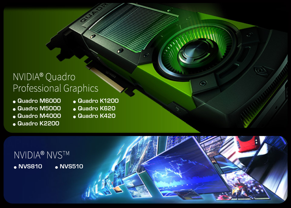 2 つの PCIe Gen3 x16 スロットは通常のグラフィックスカードに対応するだけでなく、プロフェッショナル NVIDIA® Quadro および AMD FirePro ワークステーション・グラフィックスソリューションとも完全な互換性があります。