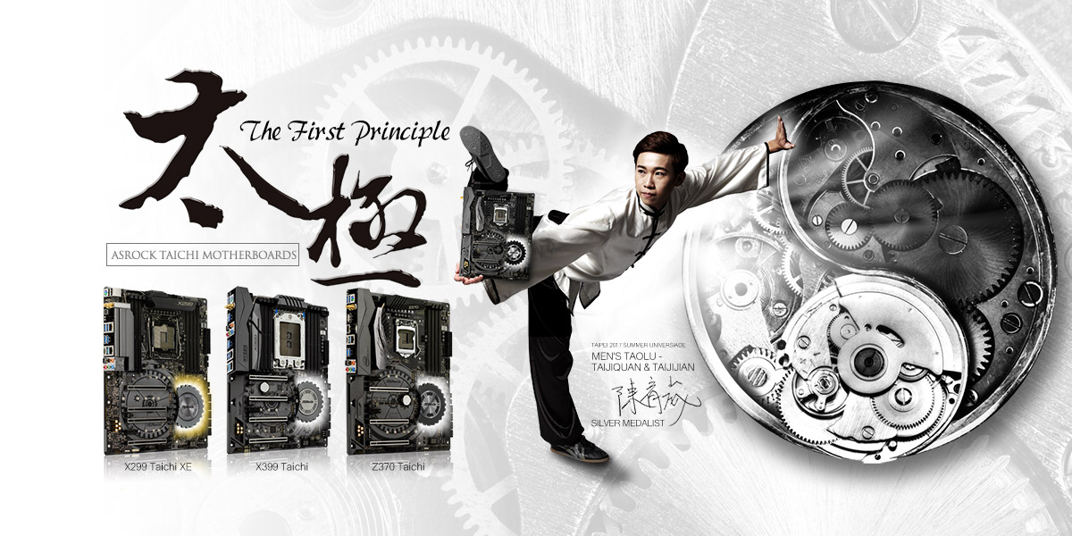 科技与中国传统武术之间出现了新的火花!在2017台北世大运男子全能太极项目脱颖而出的陈宥崴, 正式代言华擎科技Taichi系列主板。这次跨领域的合作结合陈宥崴低调专注的练武态度, 与华擎科技务实的品牌理念, 体现完美稳定、相生不息的太极精神。