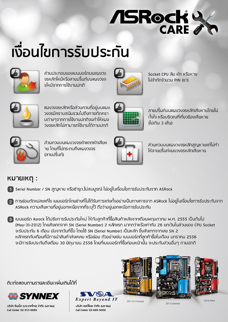 เกี่ยวกับโปรแกรมการรับประกัน กรุณาติดต่อตัวแทนจำหน่ายของท่านโดยตรง